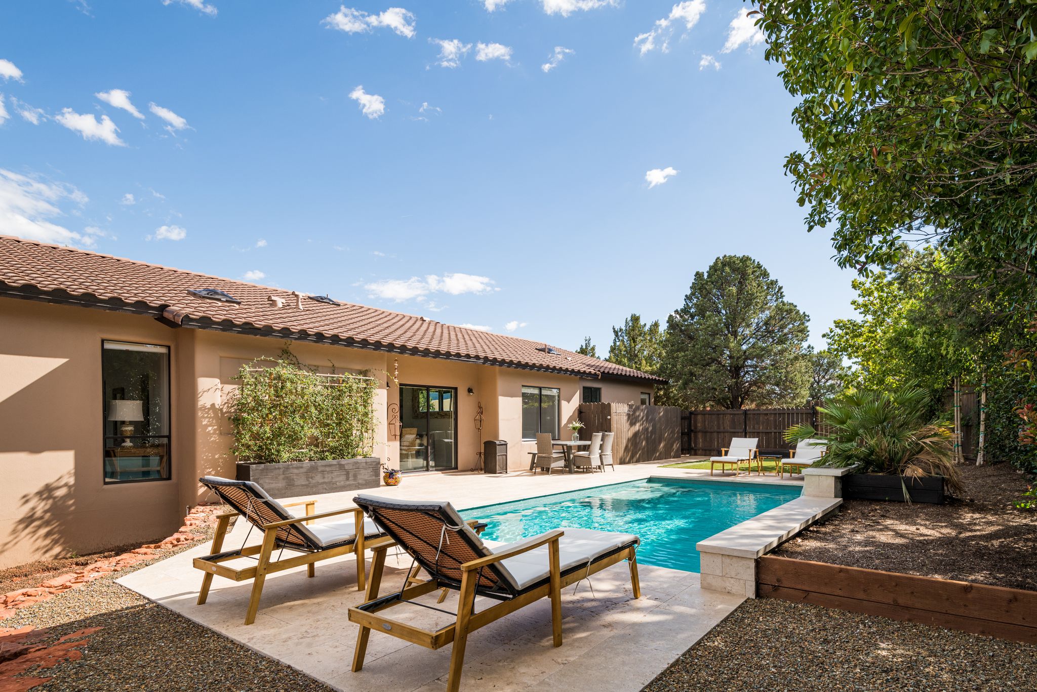 Our property boasts a beautifully designed, open concept floor plan for the entire group to feel at home. No matter if you're in the living room, the kitchen, or the front patio, the enchanting Sedona red canyons can be seen. The private backyard invites you to take a dip in the heated* pool after a beautiful hike anytime of year! This secluded backyard matched with Sedona's Dark Sky Policy ensures that all guests will experience an unobstructed view of the stars and planets overhead.